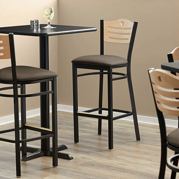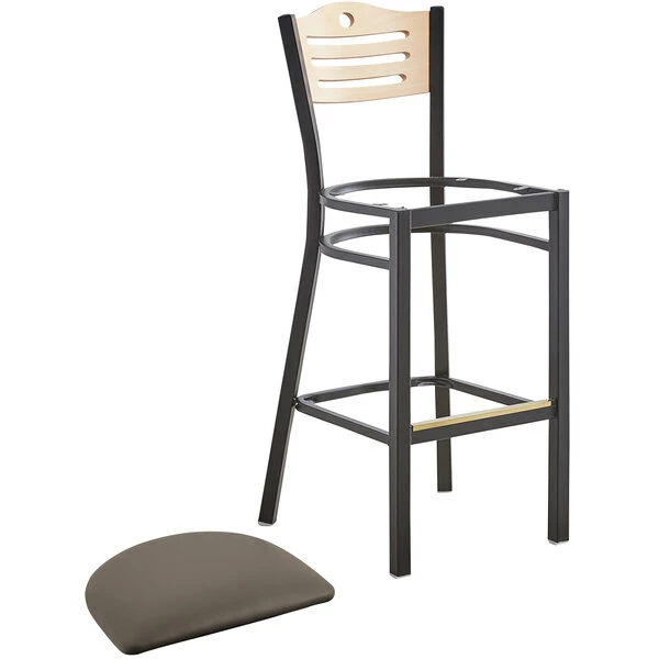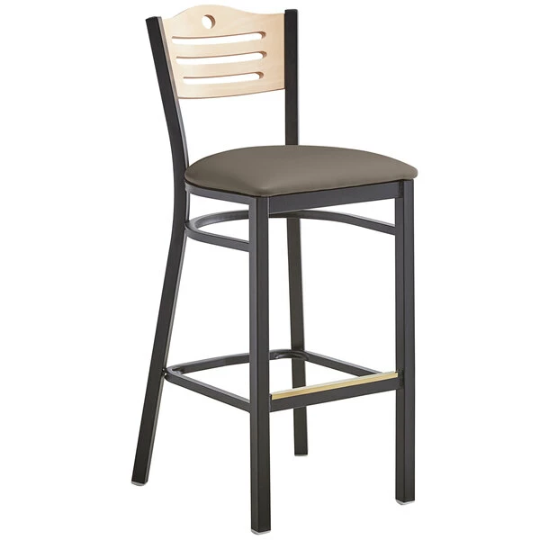 Lancaster Table & Seating Natural Finish Bar Height Bistro Chair With 2″ Taupe Padded Seat