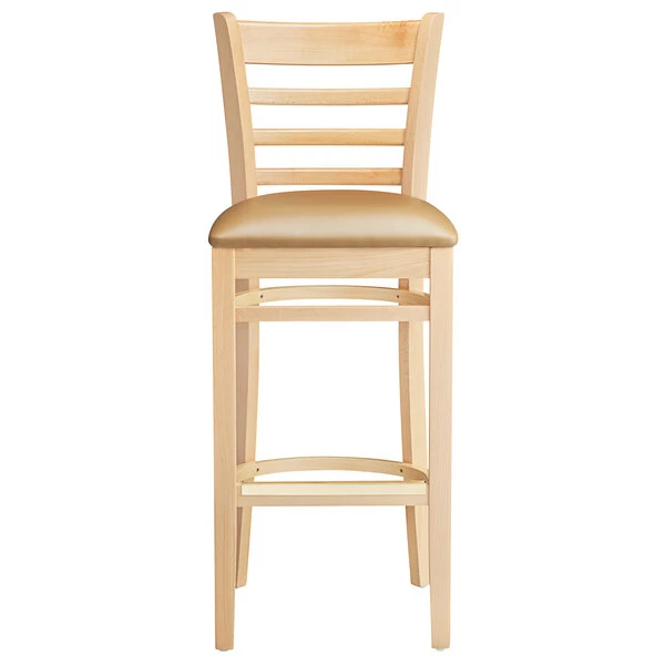 Lancaster Table & Seating Natural Ladder Back Bar Height Chair With 2 1/2″ Light Brown Padded Seat