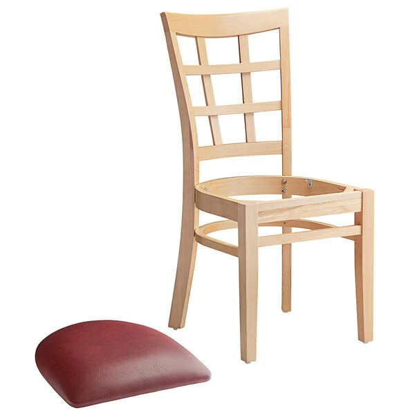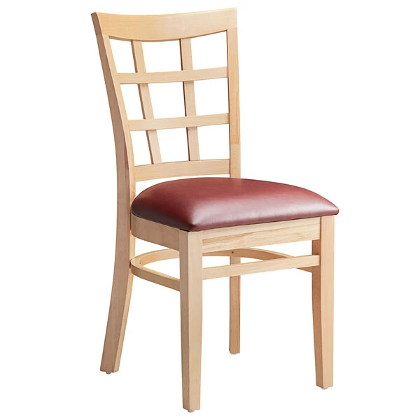 Lancaster Table & Seating Natural Wooden Window Back Chair With 2 1/2″ Burgundy Padded Seat