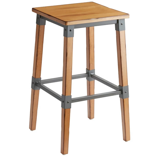 BFM Seating Trent Clear Coated Steel Backless Barstool With Relic Knotty Pine Seat