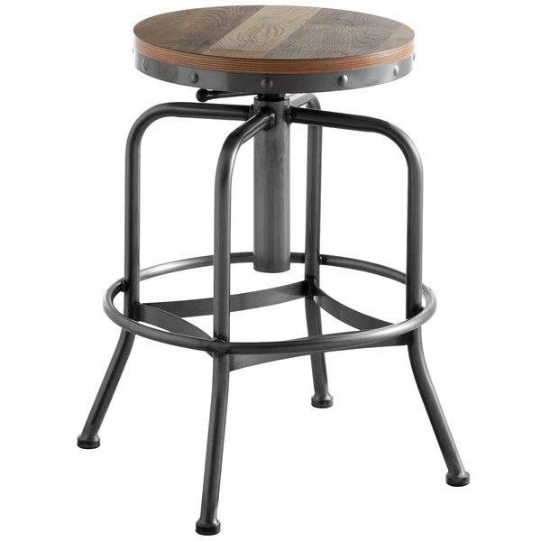 Lancaster Table & Seating Screw Top Adjustable Height Clear Coat Barstool With Driftwood Seat