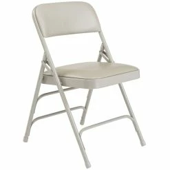 National Public Seating 1302 Gray Metal Folding Chair With 1 1/4″ Warm Gray Vinyl Padded Seat