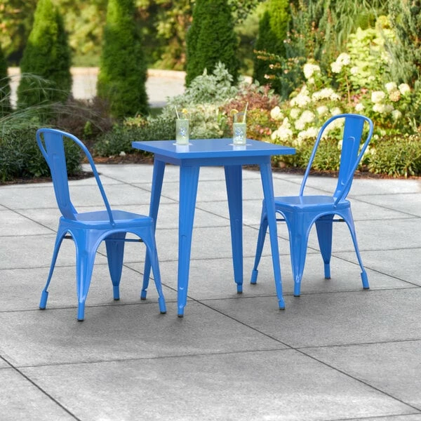LT&S Alloy Series Lancaster Table & Seating Alloy Series 24″ X 24″ Blue Dining Height Outdoor Table With 2 Industrial Cafe Chairs
