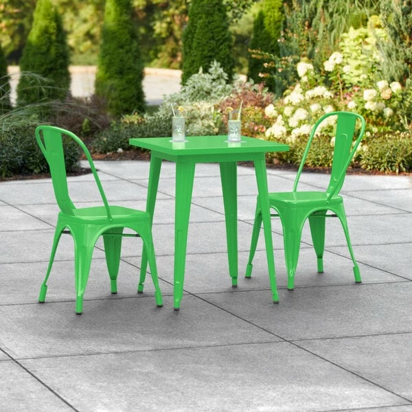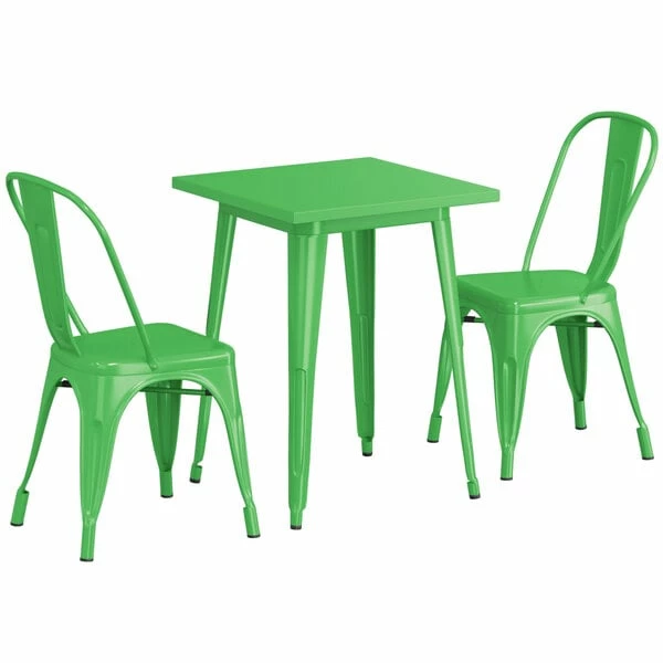 LT&S Alloy Series Lancaster Table & Seating Alloy Series 24″ X 24″ Green Dining Height Outdoor Table With 2 Industrial Cafe Chairs
