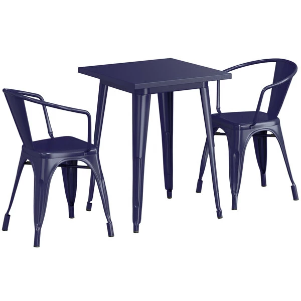 LT&S Alloy Series Lancaster Table & Seating Alloy Series 24″ X 24″ Navy Dining Height Outdoor Table With 2 Arm Chairs