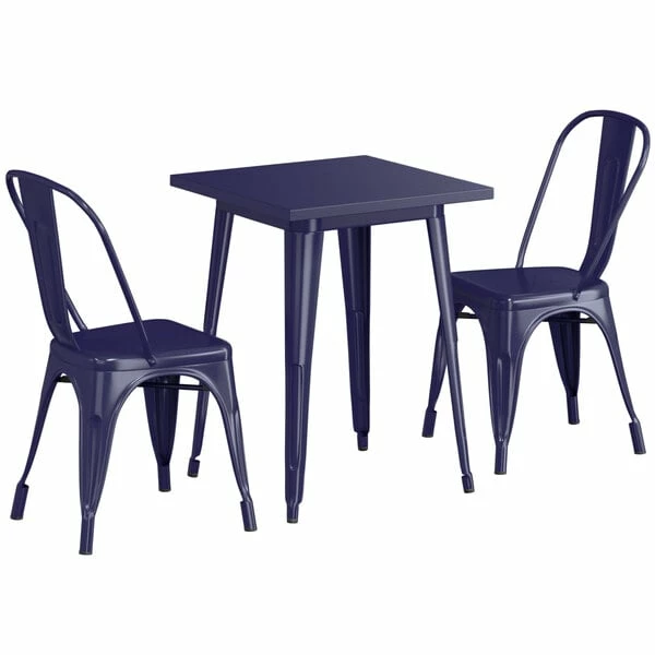 LT&S Alloy Series Lancaster Table & Seating Alloy Series 24″ X 24″ Navy Dining Height Outdoor Table With 2 Industrial Cafe Chairs