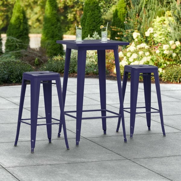 LT&S Alloy Series Lancaster Table & Seating Alloy Series 24″ X 24″ Navy Outdoor Bar Height Table With Two Barstools