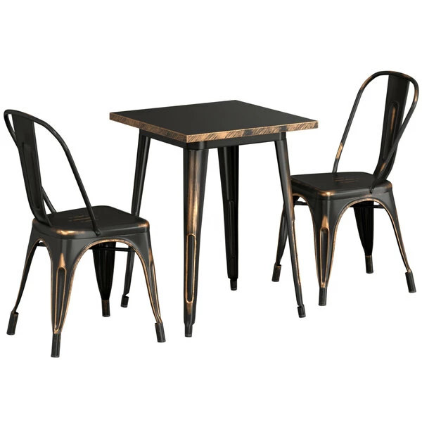 LT&S Alloy Series Lancaster Table & Seating Alloy Series 24″ X 24″ Square Distressed Copper Dining Height Outdoor Table With 2 Industrial Cafe Chairs