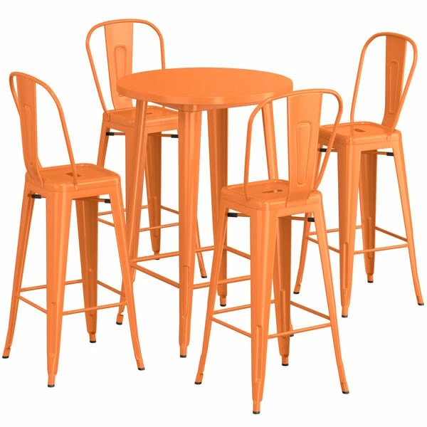 LT&S Alloy Series Lancaster Table & Seating Alloy Series 30″ Round Orange Outdoor Bar Height Table With 4 Metal Cafe Bar Stools