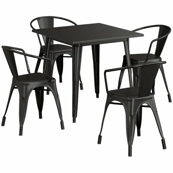 LT&S Alloy Series Lancaster Table & Seating Alloy Series 32″ X 32″ Black Dining Height Outdoor Table With 4 Arm Chairs