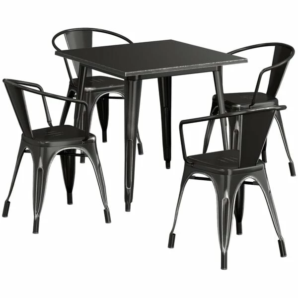 LT&S Alloy Series Lancaster Table & Seating Alloy Series 32″ X 32″ Distressed Black Dining Height Outdoor Table With 4 Arm Chairs