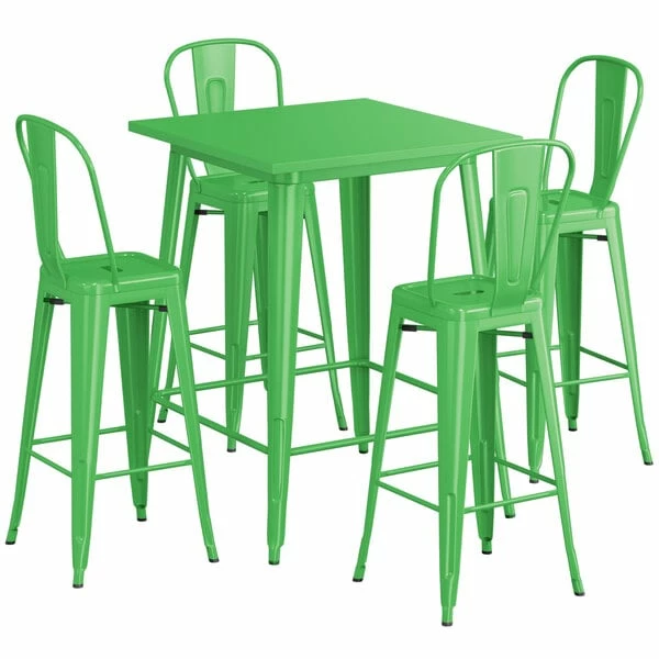 LT&S Alloy Series Lancaster Table & Seating Alloy Series 32″ X 32″ Green Outdoor Bar Height Table With 4 Metal Cafe Bar Stools