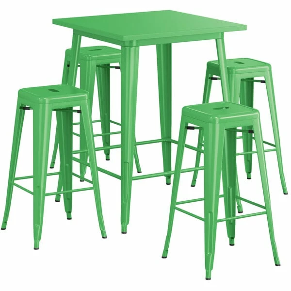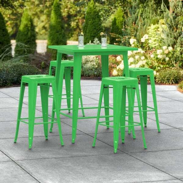 LT&S Alloy Series Lancaster Table & Seating Alloy Series 32″ X 32″ Green Outdoor Bar Height Table With Four Barstools