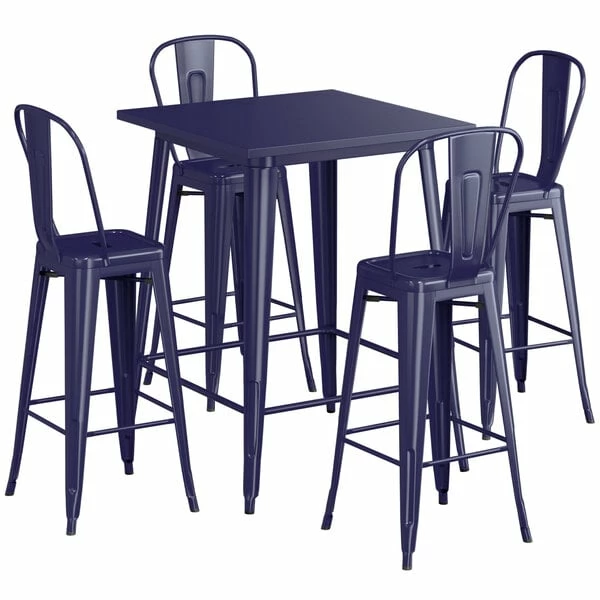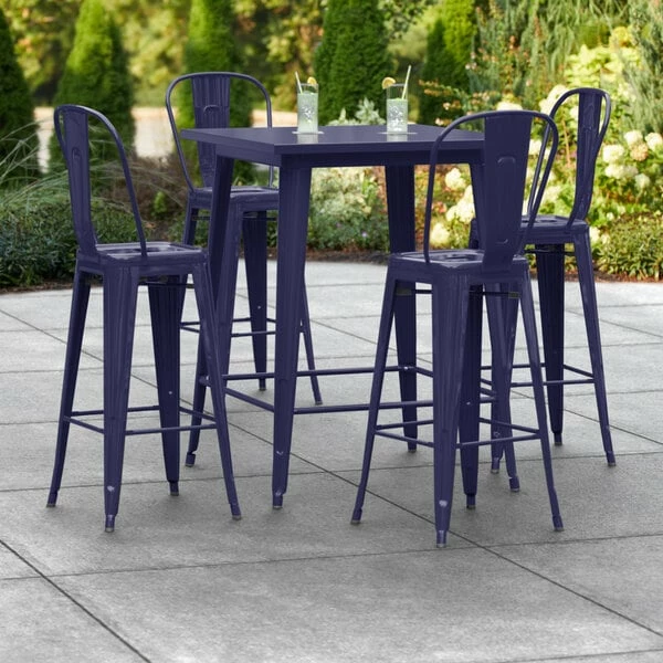 LT&S Alloy Series Lancaster Table & Seating Alloy Series 32″ X 32″ Navy Outdoor Bar Height Table With 4 Metal Cafe Bar Stools
