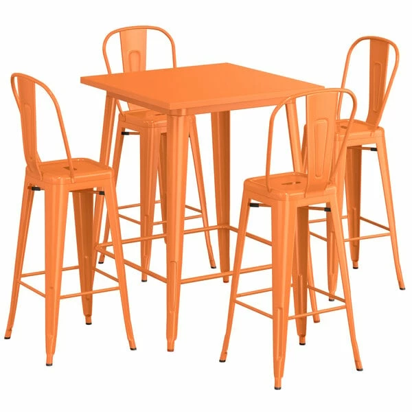 LT&S Alloy Series Lancaster Table & Seating Alloy Series 32″ X 32″ Orange Outdoor Bar Height Table With 4 Metal Cafe Bar Stools