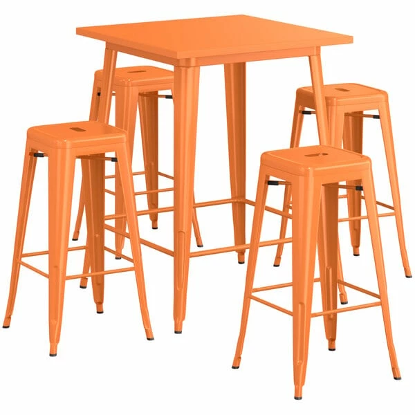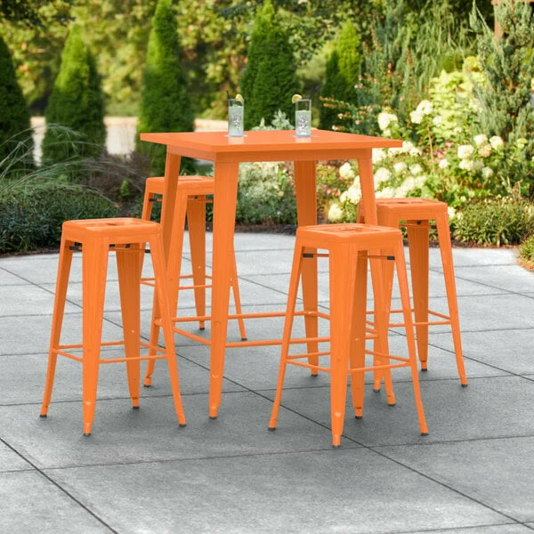 LT&S Alloy Series Lancaster Table & Seating Alloy Series 32″ X 32″ Orange Outdoor Bar Height Table With Four Barstools