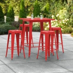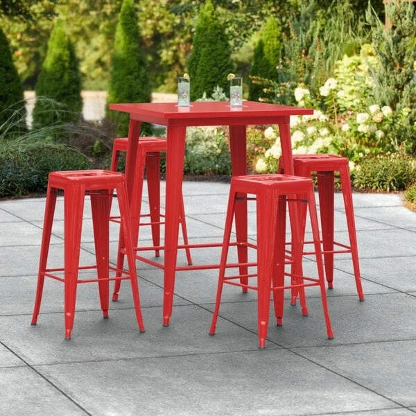 LT&S Alloy Series Lancaster Table & Seating Alloy Series 32″ X 32″ Red Outdoor Bar Height Table With Four Barstools