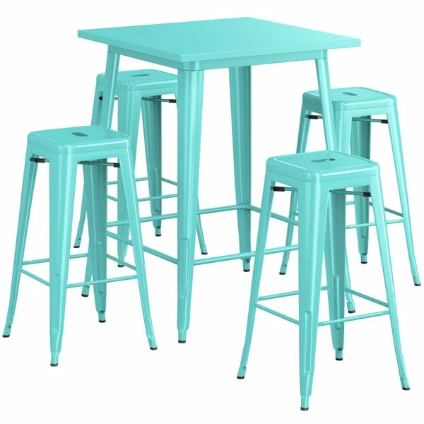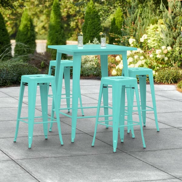 LT&S Alloy Series Lancaster Table & Seating Alloy Series 32″ X 32″ Seafoam Outdoor Bar Height Table With Four Barstools