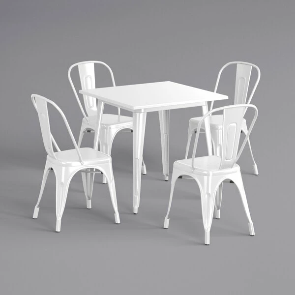 LT&S Alloy Series Lancaster Table & Seating Alloy Series 32″ X 32″ Square White Dining Height Outdoor Table With 4 Industrial Cafe Chairs