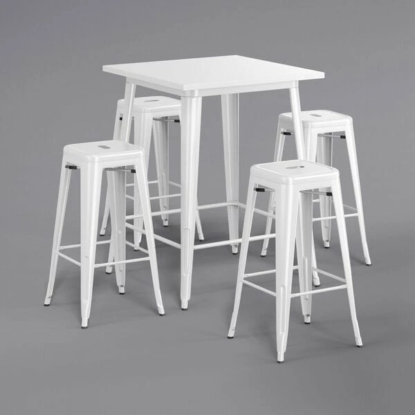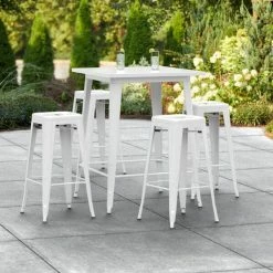 LT&S Alloy Series Lancaster Table & Seating Alloy Series 32″ X 32″ White Outdoor Bar Height Table With Four Barstools