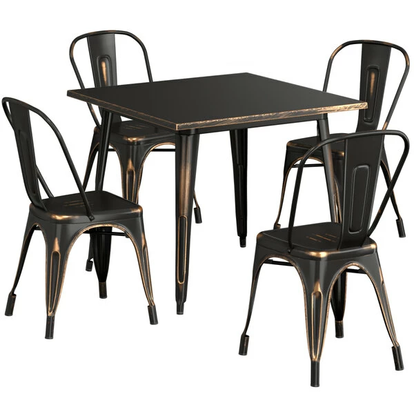 LT&S Alloy Series Lancaster Table & Seating Alloy Series 36″ X 36″ Square Distressed Copper Dining Height Outdoor Table With 4 Industrial Cafe Chairs