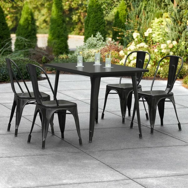 LT&S Alloy Series Lancaster Table & Seating Alloy Series 48″ X 30″ Black Dining Height Outdoor Table With 4 Industrial Cafe Chairs