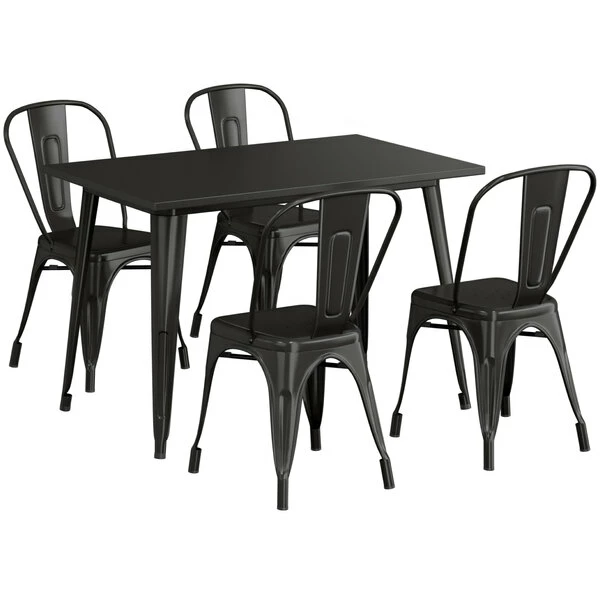 Be the first to review “LT&S Alloy Series Lancaster Table & Seating Alloy Series 48″ X 30″ Black Dining Height Outdoor Table With 4 Industrial Cafe Chairs” Cancel reply