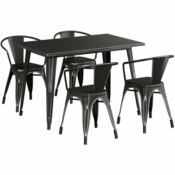 LT&S Alloy Series Lancaster Table & Seating Alloy Series 48″ X 30″ Distressed Black Dining Height Outdoor Table With 4 Arm Chairs
