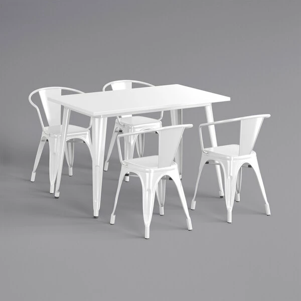 LT&S Alloy Series Lancaster Table & Seating Alloy Series 48″ X 30″ White Dining Height Outdoor Table With 4 Arm Chairs