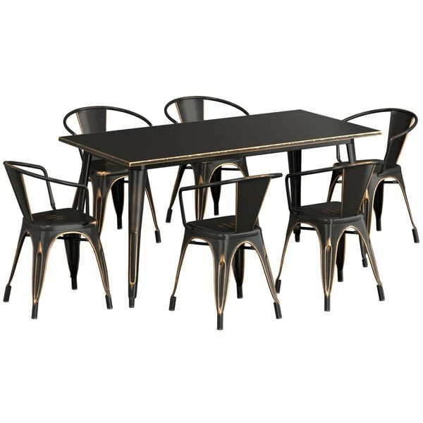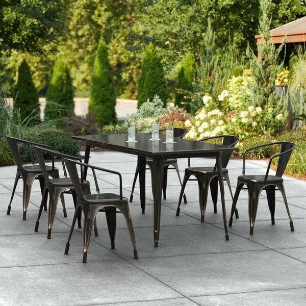 LT&S Alloy Series Lancaster Table & Seating Alloy Series 63″ X 32″ Distressed Copper Dining Height Outdoor Table With 6 Arm Chairs