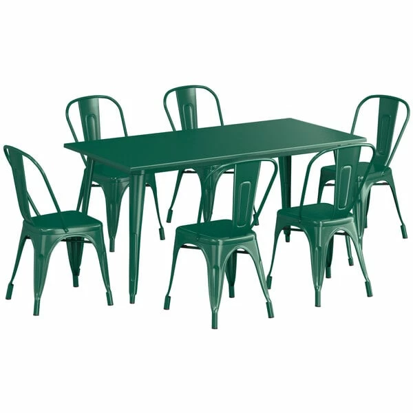 LT&S Alloy Series Lancaster Table & Seating Alloy Series 63″ X 32″ Emerald Dining Height Outdoor Table With 6 Industrial Cafe Chairs