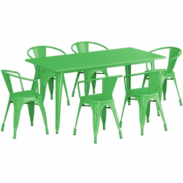 LT&S Alloy Series Lancaster Table & Seating Alloy Series 63″ X 32″ Green Dining Height Outdoor Table With 6 Arm Chairs