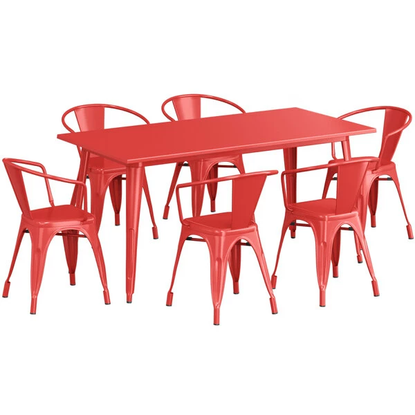 LT&S Alloy Series Lancaster Table & Seating Alloy Series 63″ X 32″ Red Dining Height Outdoor Table With 6 Arm Chairs