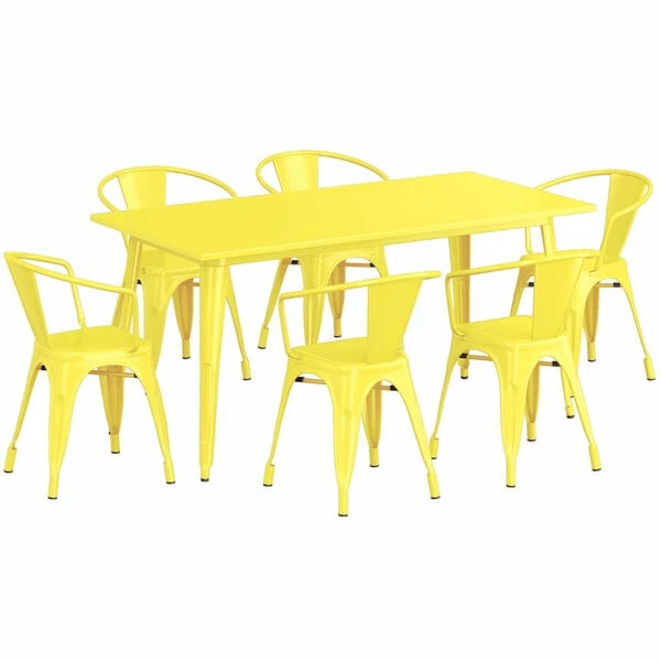 LT&S Alloy Series Lancaster Table & Seating Alloy Series 63″ X 32″ Yellow Dining Height Outdoor Table With 6 Arm Chairs