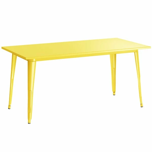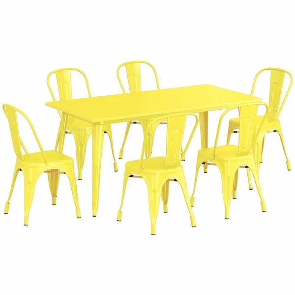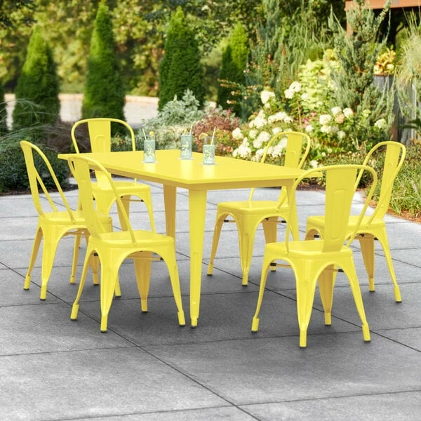 LT&S Alloy Series Lancaster Table & Seating Alloy Series 63″ X 32″ Yellow Dining Height Outdoor Table With 6 Industrial Cafe Chairs