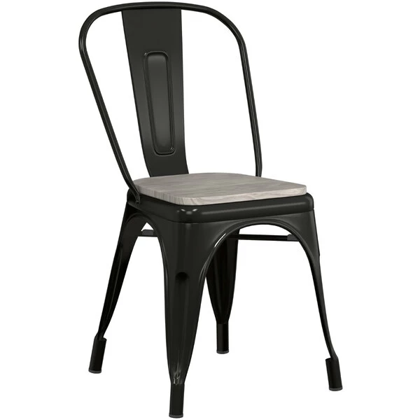 LT&S Alloy Series Lancaster Table & Seating Alloy Series Black Metal Indoor Industrial Cafe Chair With Vertical Slat Back And Gray Wood Seat