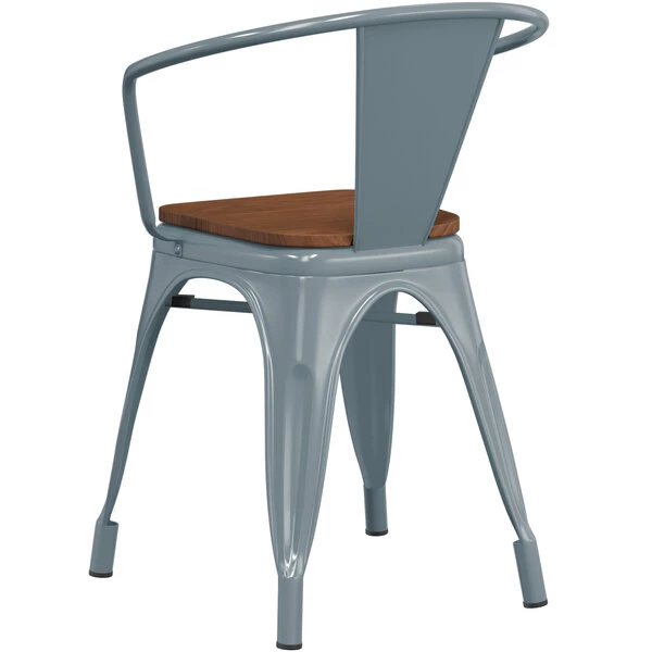 LT&S Alloy Series Lancaster Table & Seating Alloy Series Charcoal Metal Indoor Industrial Cafe Arm Chair With Walnut Wood Seat