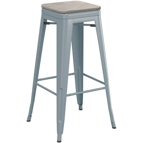 LT&S Alloy Series Lancaster Table & Seating Alloy Series Charcoal Stackable Metal Indoor Industrial Barstool With Gray Wood Seat