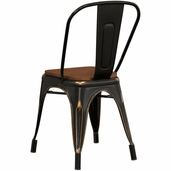 LT&S Alloy Series Lancaster Table & Seating Alloy Series Distressed Copper Metal Indoor Industrial Cafe Chair With Vertical Slat Back And Walnut Wood Seat