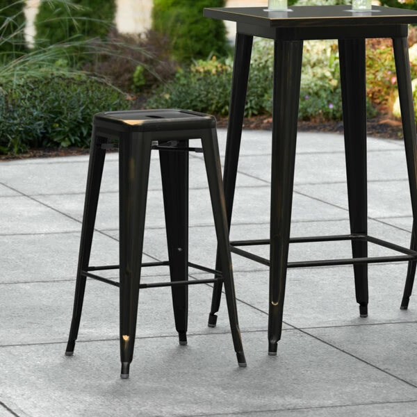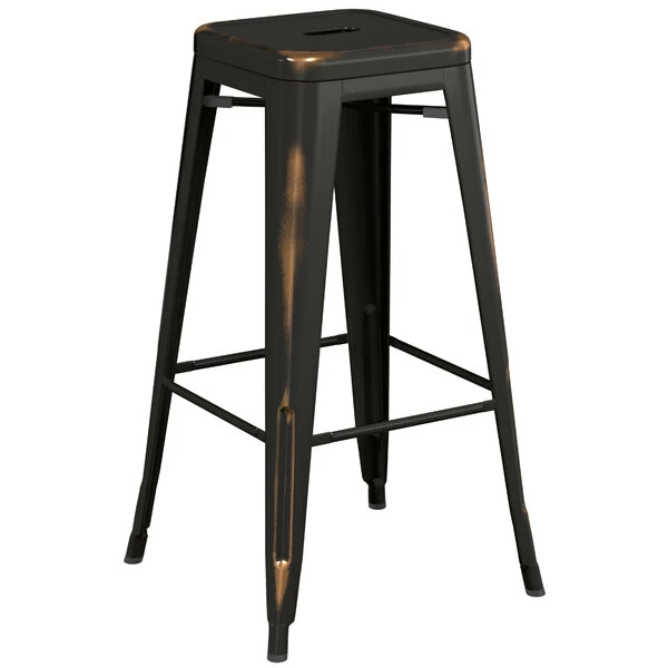 LT&S Alloy Series Lancaster Table & Seating Alloy Series Distressed Copper Stackable Metal Indoor / Outdoor Industrial Barstool With Drain Hole Seat