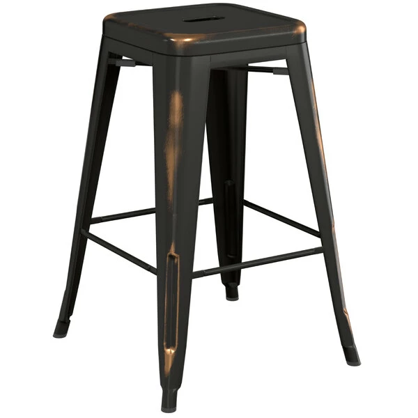 LT&S Alloy Series Lancaster Table & Seating Alloy Series Distressed Copper Stackable Metal Indoor / Outdoor Industrial Cafe Counter Height Stool With Drain Hole Seat