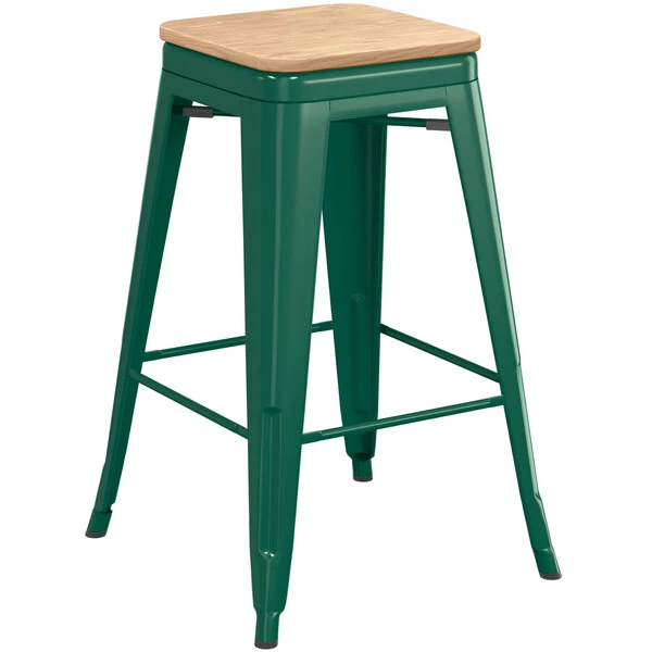 LT&S Alloy Series Lancaster Table & Seating Alloy Series Emerald Metal Indoor Industrial Cafe Counter Height Stool With Natural Wood Seat