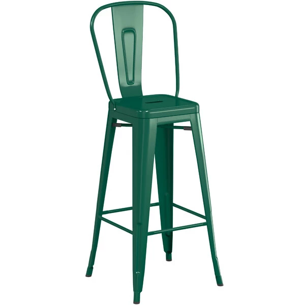 LT&S Alloy Series Lancaster Table & Seating Alloy Series Emerald Metal Indoor / Outdoor Industrial Cafe Barstool With Vertical Slat Back And Drain Hole Seat