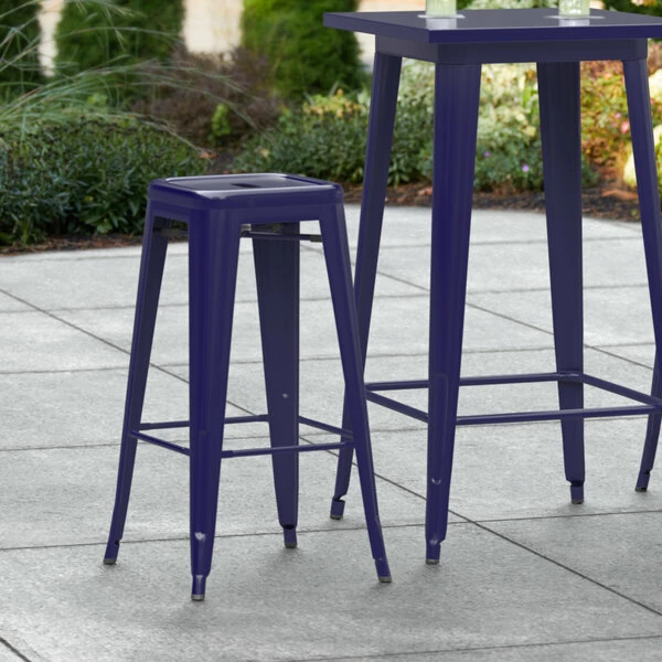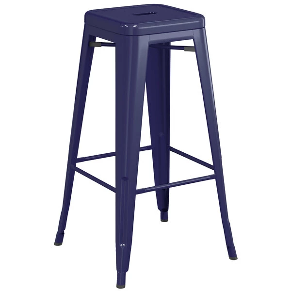 LT&S Alloy Series Lancaster Table & Seating Alloy Series Navy Stackable Metal Indoor / Outdoor Industrial Barstool With Drain Hole Seat
