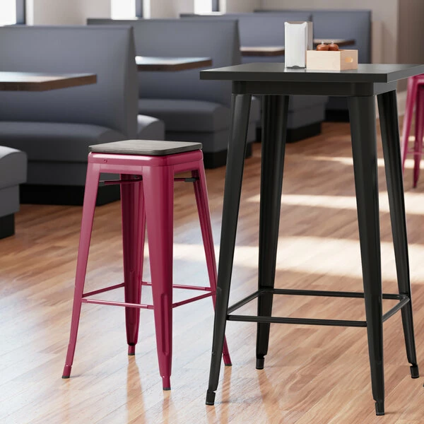 LT&S Alloy Series Lancaster Table & Seating Alloy Series Sangria Metal Indoor Industrial Cafe Bar Height Stool With Black Wood Seat