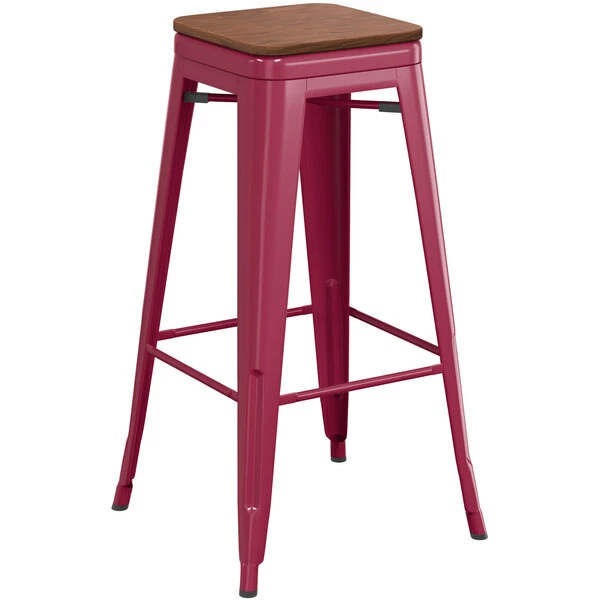 LT&S Alloy Series Lancaster Table & Seating Alloy Series Sangria Metal Indoor Industrial Cafe Bar Height Stool With Walnut Wood Seat