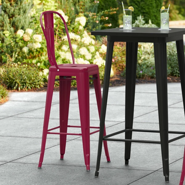 LT&S Alloy Series Lancaster Table & Seating Alloy Series Sangria Metal Indoor / Outdoor Industrial Cafe Barstool With Vertical Slat Back And Drain Hole Seat