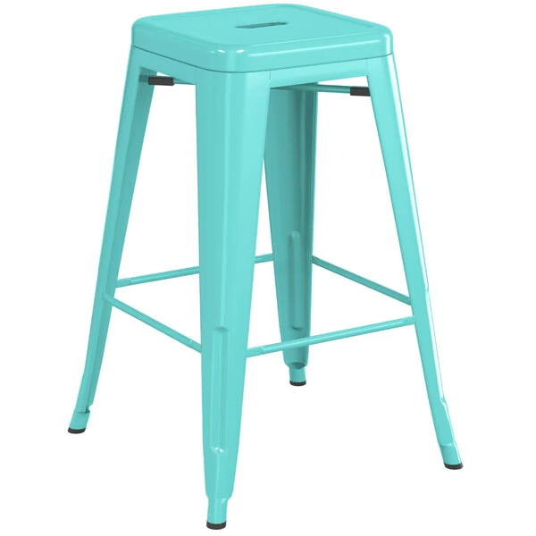 LT&S Alloy Series Lancaster Table & Seating Alloy Series Seafoam Stackable Metal Indoor / Outdoor Industrial Cafe Counter Height Stool With Drain Hole Seat