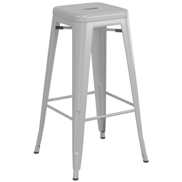 LT&S Alloy Series Lancaster Table & Seating Alloy Series Silver Stackable Metal Indoor / Outdoor Industrial Barstool With Drain Hole Seat
