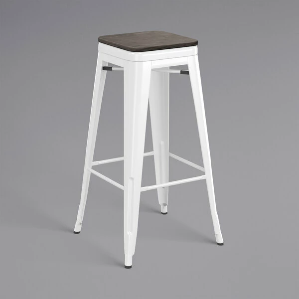 LT&S Alloy Series Lancaster Table & Seating Alloy Series White Metal Indoor Industrial Cafe Bar Height Stool With Black Wood Seat